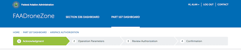 So if you want to fly a mission that requires both a Part 107 waiver and airspace authorization, you must obtain your Part 107 waiver prior to requesting an airspace authorization or airspace waiver.